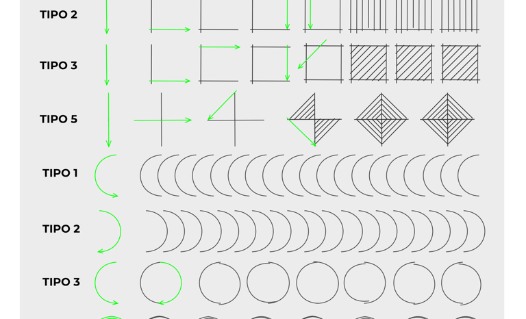 Uso de linhas retas, linhas curvas e prismas como guia - Traço