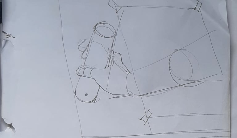 Esta relação espacial entre o formato(espaço delimitado) e os objetos desenhados é o onde começa qualquer desenho. Sempre que começamos um desenho de objeto, devemos lembrar deste conceito, pois ele é útil para analisar a beleza e equilibrio das composições.
