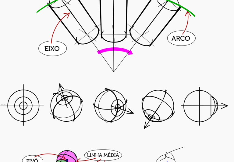 Eixo , Linha média, Pivô, Arco.
