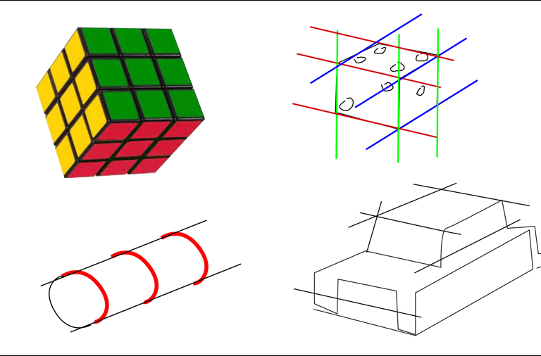 Funciona assim: Antes de começar a fazer um desenho ou uma cena, o artista deve fazer um estudo dos objetos que a compõe, desenhando-os em quantas vistas isométricas forem necessárias para que alcance seu entendimento em todas as formas e detalhes.